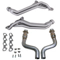 These BBK Performance full length exhaust headers and matching high flow catted mid pipe kits offer unsurpassed value, performance, quality, and fitment. Dyno tested and built right here in the USA our products outperform the competition hands down.Every long tube exhaust header system is built with CNC mandrel bent tubing for unrestrictive exhaust flow and maximum performance. All headers include 3/8" laser cut exhaust flanges, patented scavenging collector design and gasket less ball and socket connectors to easily connect the matching mid pipes.These performance exhaust kits have been designed specifically for your vehicles application to get the most horsepower and torque to the ground for maximum performance across the RPM range.All matching mid pipes included in our kits have high flow catalytic converters installed optimum sound and performance gains.All of these BBK kits are designed to replace the factory shorty style headers and factory mid pipe. Each BBK long tube header and matching mid pipe kit will bolt directly up to your cat back exhaust on your vehicle to complete the system to the tail pipe.Our decades of exhaust design and experience make BBK Performance the number one choice for your late model American car or truck.