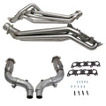 These BBK Performance full length exhaust headers and matching high flow catted mid pipe kits offer unsurpassed value, performance, quality, and fitment. Dyno tested and built right here in the USA our products outperform the competition hands down.Every long tube exhaust header system is built with CNC mandrel bent tubing for unrestrictive exhaust flow and maximum performance. All headers include 3/8" laser cut exhaust flanges, patented scavenging collector design and gasket less ball and socket connectors to easily connect the matching mid pipes.These performance exhaust kits have been designed specifically for your vehicles application to get the most horsepower and torque to the ground for maximum performance across the RPM range.All matching mid pipes included in our kits have high flow catalytic converters installed optimum sound and performance gains.All of these BBK kits are designed to replace the factory shorty style headers and factory mid pipe. Each BBK long tube header and matching mid pipe kit will bolt directly up to your cat back exhaust on your vehicle to complete the system to the tail pipe.Our decades of exhaust design and experience make BBK Performance the number one choice for your late model American car or truck.