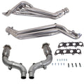 These BBK Performance full length exhaust headers and matching high flow catted mid pipe kits offer unsurpassed value, performance, quality, and fitment. Dyno tested and built right here in the USA our products outperform the competition hands down.Every long tube exhaust header system is built with CNC mandrel bent tubing for unrestrictive exhaust flow and maximum performance. All headers include 3/8" laser cut exhaust flanges, patented scavenging collector design and gasket less ball and socket connectors to easily connect the matching mid pipes.These performance exhaust kits have been designed specifically for your vehicles application to get the most horsepower and torque to the ground for maximum performance across the RPM range.All matching mid pipes included in our kits have high flow catalytic converters installed optimum sound and performance gains.All of these BBK kits are designed to replace the factory shorty style headers and factory mid pipe. Each BBK long tube header and matching mid pipe kit will bolt directly up to your cat back exhaust on your vehicle to complete the system to the tail pipe.Our decades of exhaust design and experience make BBK Performance the number one choice for your late model American car or truck.