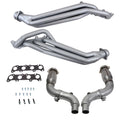 These BBK Performance full length exhaust headers and matching high flow catted mid pipe kits offer unsurpassed value, performance, quality, and fitment. Dyno tested and built right here in the USA our products outperform the competition hands down.Every long tube exhaust header system is built with CNC mandrel bent tubing for unrestrictive exhaust flow and maximum performance. All headers include 3/8" laser cut exhaust flanges, patented scavenging collector design and gasket less ball and socket connectors to easily connect the matching mid pipes.These performance exhaust kits have been designed specifically for your vehicles application to get the most horsepower and torque to the ground for maximum performance across the RPM range.All matching mid pipes included in our kits have high flow catalytic converters installed optimum sound and performance gains.All of these BBK kits are designed to replace the factory shorty style headers and factory mid pipe. Each BBK long tube header and matching mid pipe kit will bolt directly up to your cat back exhaust on your vehicle to complete the system to the tail pipe.Our decades of exhaust design and experience make BBK Performance the number one choice for your late model American car or truck.