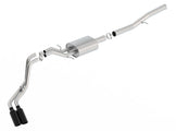 This 3.5" diameter into dual 2.25" Cat-Back™ system delivers the aggressive ATAK® sound with no drone inside the vehicle. The system features single 4" round black chrome on T-304 stainless steel tips on each tail pipe. Using BORLA® Stainless Steel Polish p# 21461 is NOT recommended with these black chrome tips. We suggest cleaning the tips with hot water and a microfiber cloth. A system with bright chrome on T-304 stainless steel tips is also available. BORLA® Cat-Back™ and Axle-Back exhaust systems feature patented straight-through and multi-core technology designed to unleash hidden horsepower. Increased exhaust velocity adds power, driving excitement, fuel economy, and the distinctive BORLA® Sound of Power respected by motoring enthusiasts everywhere. Each system is built from premium T-304 stainless steel, superior to T-400 series knockoffs (such as 409), to give you the absolute best in performance and durability. Ultra-smooth mandrel bends ensure maximum flow & power, and precision computer numerical control (CNC) manufacturing ensures an accurate fit. Best of all, BORLA® stands behind every system with a Million-Mile Warranty. Just what you'd expect from the world's most experienced (and most winning) exhaust brand.