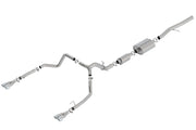 EXCEPT ZR2 & AT4X models. Factory Split Rear Exit ONLY. This system features bright chrome on T-304 stainless steel tips. Add Adapter 60706 for Crew Cab with Standard Bed (6' 7") 157" Wheelbase vehicles. Replace the small muffler behind the primary muffler in the Borla(r) "S-Type" system with Polyphonic Harmonizer 60680 to attain the "ATAK(r)" sound level (louder than "S-Type"). Optional "True Dual" Cat-Back(tm) system available, see the Related Parts section. Borla(r) Cat-Back(tm) & Axle-Back exhaust systems feature patented straight-through and multi-core technology designed to unleash hidden horsepower. Increased exhaust velocity adds power, driving excitement, fuel economy, and the distinctive Borla(r) Sound of Power respected by motoring enthusiasts everywhere. Each system is built from premium T-304 stainless steel, superior to T-400 series knockoffs (such as 409), to give you the absolute best in performance and durability. Ultra-smooth mandrel bends ensure maximum flow & power, and precision computer numerical control (CNC) manufacturing ensures an accurate fit. Best of all, Borla(r) stands behind every system with a Million-Mile Warranty. Just what you'd expect from the world's most experienced (and most winning) exhaust brand.