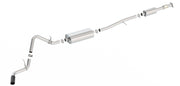 Factory Single Side Exit vehicles ONLY. Add Adapter 60708 For Crew Cab with Standard Bed (6' 7") 157" Wheelbase vehicles. This 3" Cat-Back(tm) system with the S-Type sound level will give your 2.7L Silverado and Sierra the right sound and performance without any of the annoying drone often found in four cylinder applications. The system is tuned for flow and sound on the turbo four cylinder engine of the GM 1500 trucks. This system features a single 4" black chrome on T-304 stainless steel tip. A bright chrome on T-304 stainless steel tip is also available. Using Borla(r) Stainless Steel Polish p# 21461 is NOT recommended with these black chrome tips. Borla(r) Cat-Back(tm) & Axle-Back exhaust systems feature patented straight-through and multi-core technology to unleash hidden horsepower. Increased exhaust velocity adds power, driving excitement, fuel economy, and the distinctive Borla(r) Sound of Power respected by motoring enthusiasts everywhere. Ultra-smooth mandrel bends ensure maximum flow & power, and precision computer numerical control (CNC) manufacturing ensures an accurate fit. The system is constructed using premium, high quality T-304 stainless steel which is superior to 400 series. Borla(r) exhaust systems are covered under our Million-Mile warranty with the following exceptions. Borla(r) will warranty black coatings, tip finishes, and carbon fiber parts for one year.
