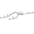The MagnaFlow Street Series Cat-Back Performance Exhaust System 15268 brings out the personality of your Truck with our signature resonant, powerful engine tone and dyno-proven performance. Thanks to its fast-flowing, mandrel bent 3in. main piping and 1 Straight-Through mufflers ending in a Dual Split Rear exit with 4in. Polished Clamp-On Double Wall Angle Cut Rolled Edge tips, this Truck exhaust kit has the performance chops to match its sporty sound and appearance. Upgrade your ride to the next level with an exhaust that has the pipes to put other Truck's to shame. With this system your vehicle will be producing Aggressive exterior and Moderate interior sound levels while leaving other cars and trucks feeling envious at every stoplight. Exhaust kit 15268 features a cat-back layout that replaces your ride's stock exhaust components from near the catalytic converter on back. Extensive 3D scanning during development has resulted in a direct-fit design that you can easily install yourself. 15268 is produced using CNC precision robotic manufacturing techniques and is backed by MagnaFlow's 1-year limited finish warranty and limited lifetime construction warranty.
