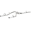 The MagnaFlow Street Series Cat-Back Performance Exhaust System 15565 brings out the personality of your Truck with our signature resonant, powerful engine tone and dyno-proven performance. Thanks to its fast-flowing, mandrel bent 3in. main piping and 1 Straight-Through mufflers ending in a Dual Split Rear exit with 3.5in. Polished Clamp-On Single Wall Angle Cut Rolled Edge tips, this Truck exhaust kit has the performance chops to match its sporty sound and appearance. Upgrade your ride to the next level with an exhaust that has the pipes to put other Truck's to shame. With this system your vehicle will be producing Aggressive exterior and Moderate interior sound levels while leaving other cars and trucks feeling envious at every stoplight. Exhaust kit 15565 features a cat-back layout that replaces your ride's stock exhaust components from near the catalytic converter on back. Extensive 3D scanning during development has resulted in a direct-fit design that you can easily install yourself. 15565 is produced using CNC precision robotic manufacturing techniques and is backed by MagnaFlow's 1-year limited finish warranty and limited lifetime construction warranty.
